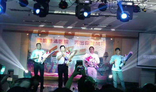 比赛伊始,一场美轮美奂的灯光秀后,主持人宣布评委嘉宾、比赛规则、评分标准以及奖项设置。姚桂昌院长、书记作了热情洋溢的致辞。首先他代表医院向全院干部职工的辛勤工作表达了诚挚的谢意,并预祝各位选手赛出风格、赛出水平,取得满意的成绩。