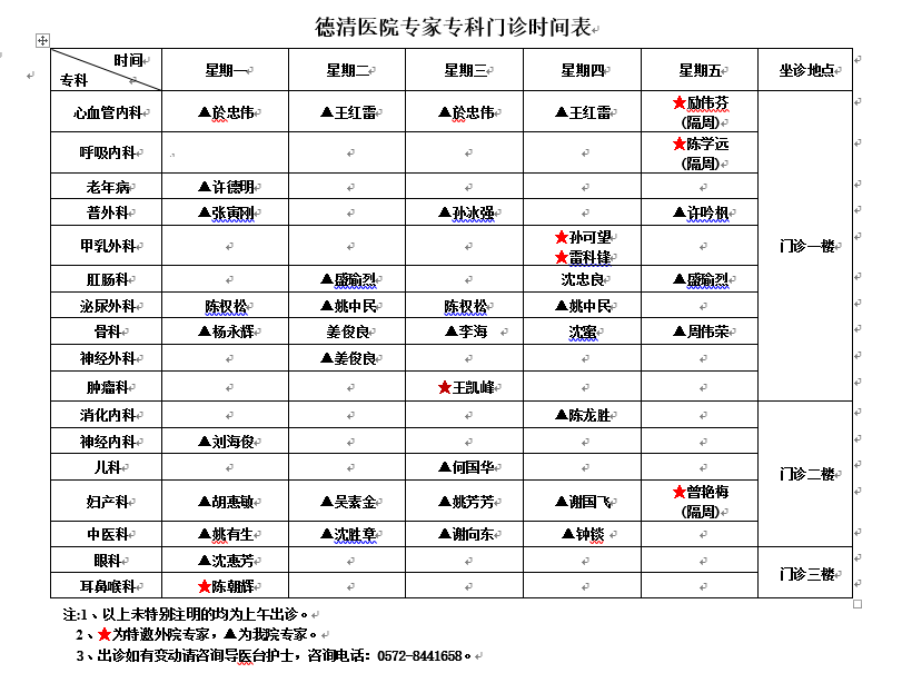 二、坐诊时间:每周四上午