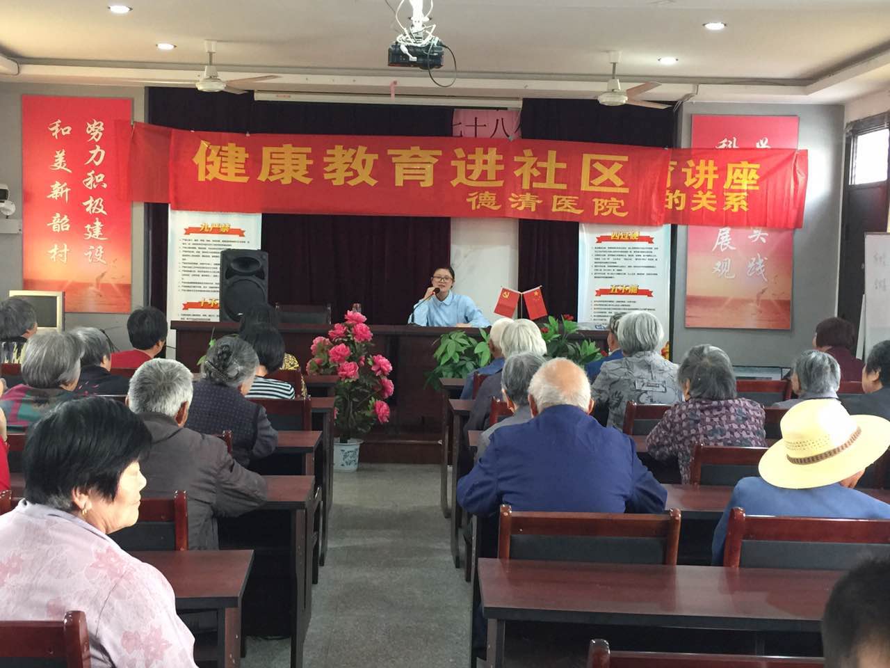 2017年4月27日下午,由德清医院手术室护师章琬婷为韶村村老百姓讲述健康教育知识讲座——《老年人心理健康》,针对老年期的心理问题从退休和社会职能的变化、家庭和家庭关系、衰老,疾病及其心理反应、经济问题、生活事件的影响一一展开,理论结合实际,老百姓们听得很认真!活动中,大家积极发言,尤其对老年人如何调整好心态,大家更是感兴趣。