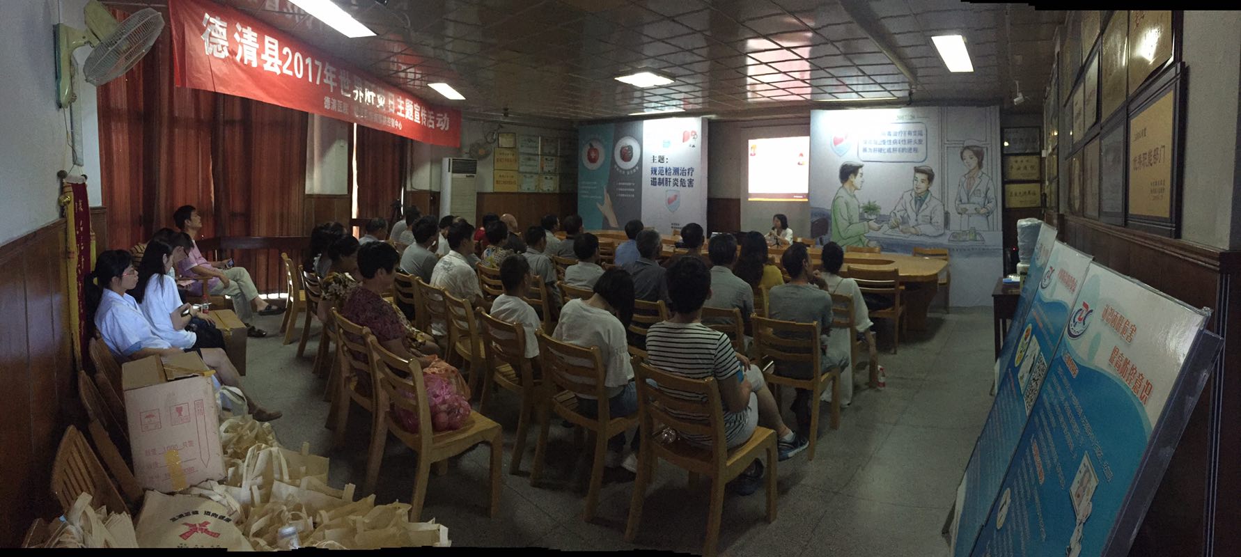 由德清县疾病预防控制中心和德清医院联合举办2017年世界肝炎日主题宣传活动,7月28日当天上午由德清医院中医科彭红红医师主讲《规范检测治疗 遏制肝炎危害》,到场参加的人员有新市西安社区、仙潭社区的居民及孕产妇等等,大家不畏高温,积极参与。听完讲座后进入抢答环节,场面非常激烈,答题正确者还获得了精美的小礼品。散会后大家还向彭红红医师咨询了很多关于肝炎治疗方面的专业问题,这次活动共发放宣传资料100余份,总之,大家受益匪浅。