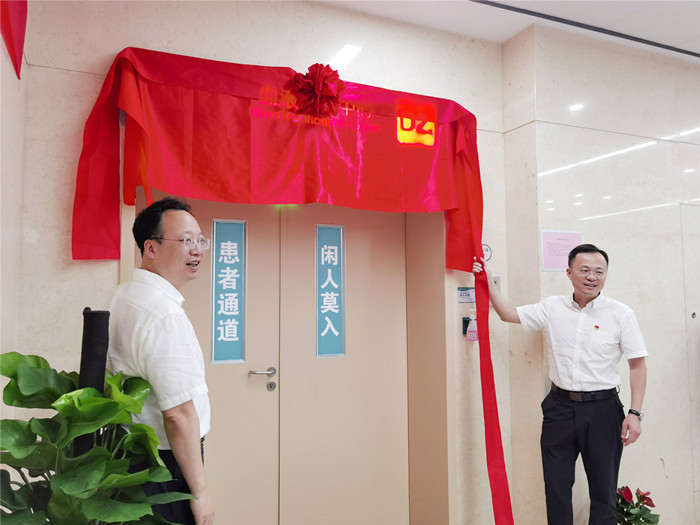 昨天下午,我院血液净化中心正式启用。县卫健局党委书记、局长许哲锋,县卫健局党委委员、副局长俞晓明,县卫健局医政医管科科长沈黎明、杭州师范大学附属医院专家出席揭幕仪式。杭州师范大学附属医院党委书记、我院党委书记骆宏,杭州师范大学附属医院副院长、我院院长王静华等院领导班子成员以及血液净化中心医务人员、行政职能科室代表近80人参加此次仪式。启用揭幕仪式由杭师大附属医院副院长、我院院长王静华主持。