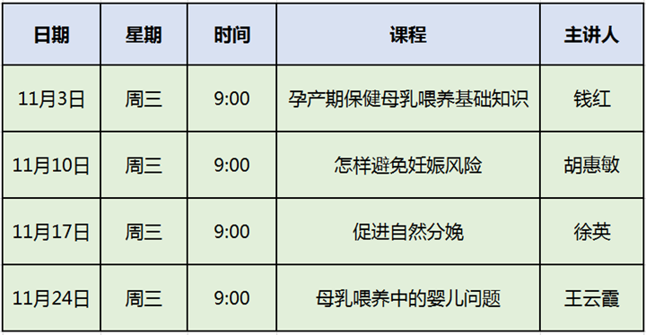 【公告】杭州师范大学附属德清医院孕妇学校11月课程安排