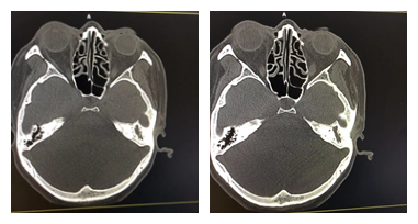 乳突CT提示:左侧中耳乳突炎