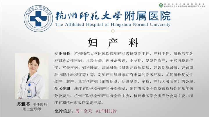 为了广大女性朋友的生育、健康和美丽,裘雅芬主任带领杭师大附属医院产科专家团队为您的健康需求保驾护航——