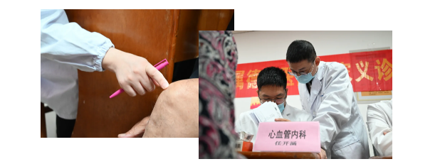 在东升社区邻里中心,几张简单的桌子搭起了义诊台,摆放着各位专家专业特长的台签,方便群众“对号入座”。对于专家团的到来,当地的大爷大妈们也分外期待,早早的赶来等候。
