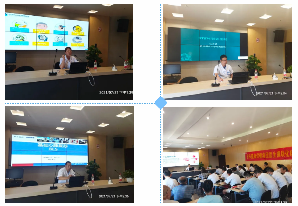 本次医师模块化培训由杭师大附属医院神经内科专家宋秋英、心血管内科专家任开涵、重症医学科专家唐文学分别开展脑卒中的诊断、胸痛的鉴别诊断、基础心肺复苏三方面的讲课培训。本次讲课共有钟管镇中心卫生院及下属村、卫生室医生50余人参加。