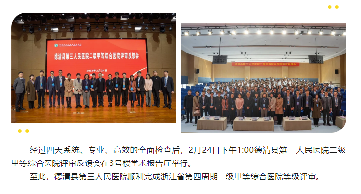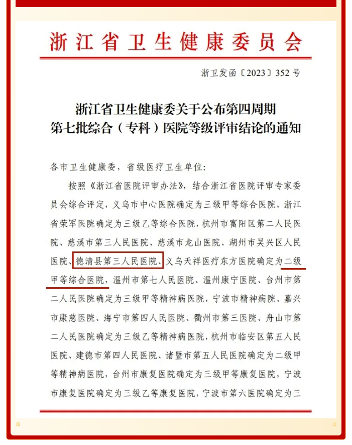 喜报!德清县第三人民医院正式晋级为二级甲等综合医院